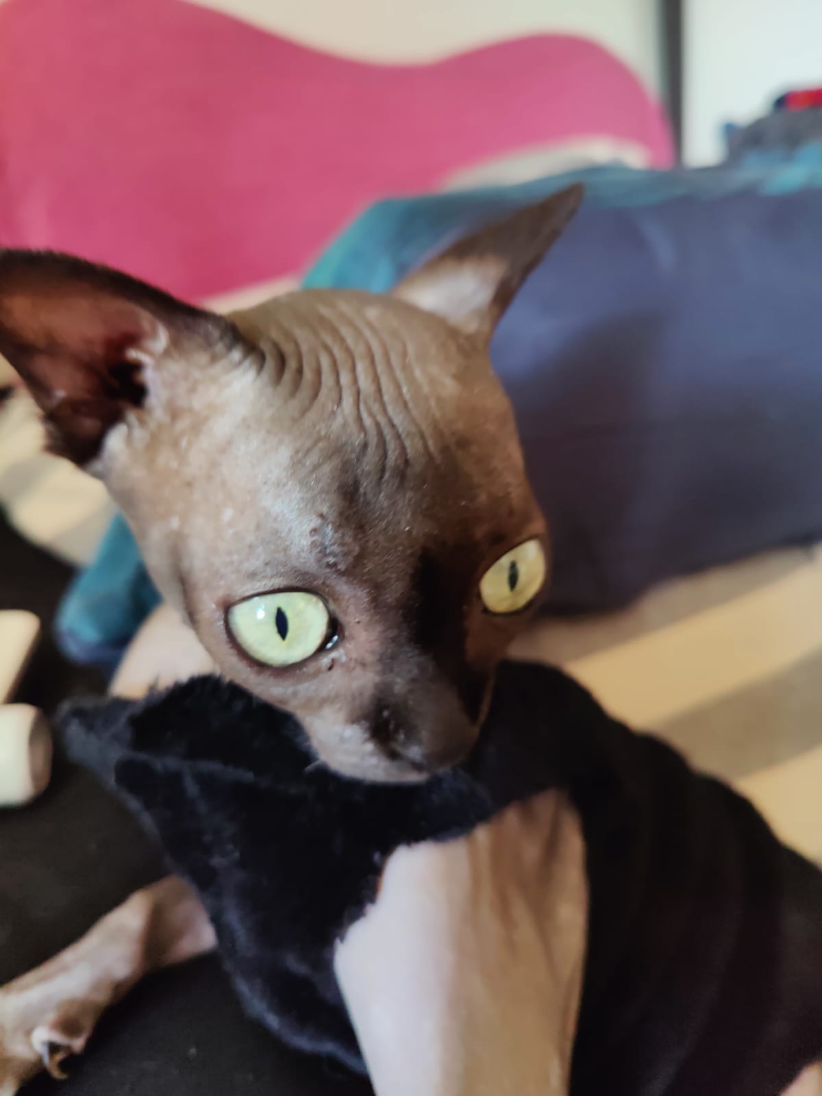 Lucy is a recently adopted female Sphynx cat born on the 15 of March 2019. She was born with hydrocephalus (access fluid in the brain) and needs to be evaluated by a veterinarian neurologist and have various tests done in order to decide which course of treatment is needed and if she is eligible for surgery to install a shunt in her brain ventricle to drain the excess fluid inside her belly area where it will be harmless. She is a happy adorable kitten, but expenses run high and we want to provide for her the best life she could have as she deserves it. Follow her daily updates on Instagram @lucythebatcat