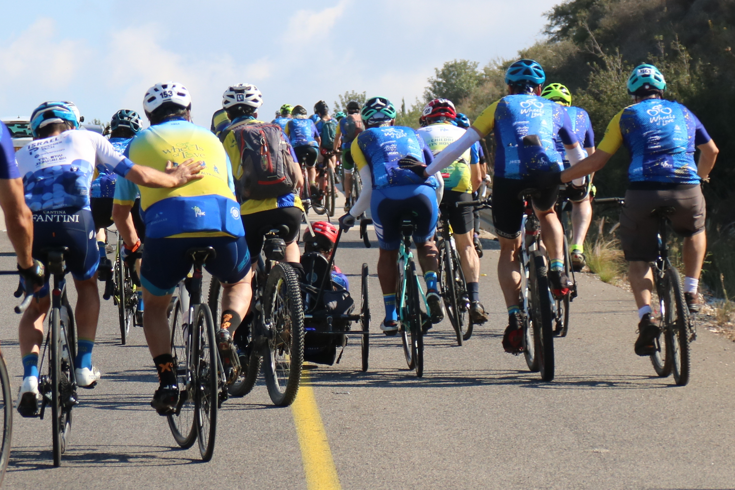 See the photo above. I took it during the Alyn 2022 ride. On the right side of the yellow line are riders assisting Mati get up the hill, and on the left side Guy Niv, Israel's first Tour de France competitor, is helping someone too.
