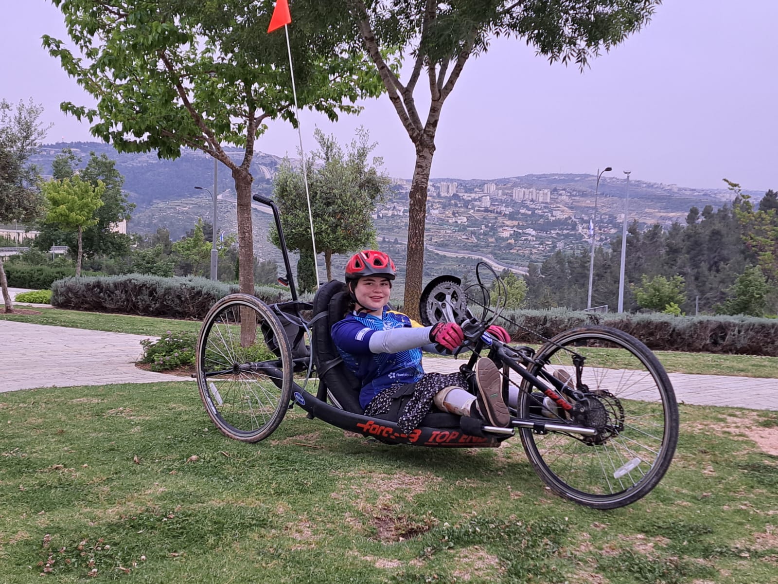 Mati Weiss is almost 16 years old. She uses a wheelchair due to paralysis of her lower body after a tumor in her spine at the age of 1. She had intense rehabilitation at the ALYN Children's Hospital in Jerusalem where she developed independence in all areas thanks to treatments in physical therapy, occupational therapy, and hydrotherapy. The staff at Alyn introduced Mati to the bike riding group "The Swift and the Bold", which is comprised of kids who have done rehab at the Alyn Hospital. Since age 8 Mati has been biking with the group, which joins the hundreds of athletes who ride the annual Wheels of Love ride to benefit the hospital. The "Swift and the Bold" join for a few days of the week long ride every year.