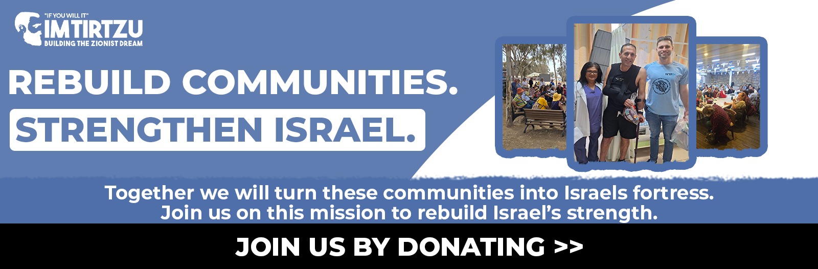 Families in Israel's border communties faced fear, loss and disruption. Daily life changed in an instant. Their homes were destroyed, their livelihoods shattered. Now, Im Tirtzu is taking upon itself the mission to rebuild communties, strengthen their resilience, and through them, secure the future of Israel Following two years of disruption, rebuilding has become the central mission of these communties. Im Tirtzu has the pepole, the experiance and the local presence needed to help rebuild and support these communities. Your support helps: Strengthen Im Tirtzu's community branches in the periphery. Empower our local volunteers and studants within our student branches in the academia voluteering in the periphery. Restore Israel's resilience and sovereignty from the ground up. Together we will turn these communities into Israel's fortress Join us in this mission.